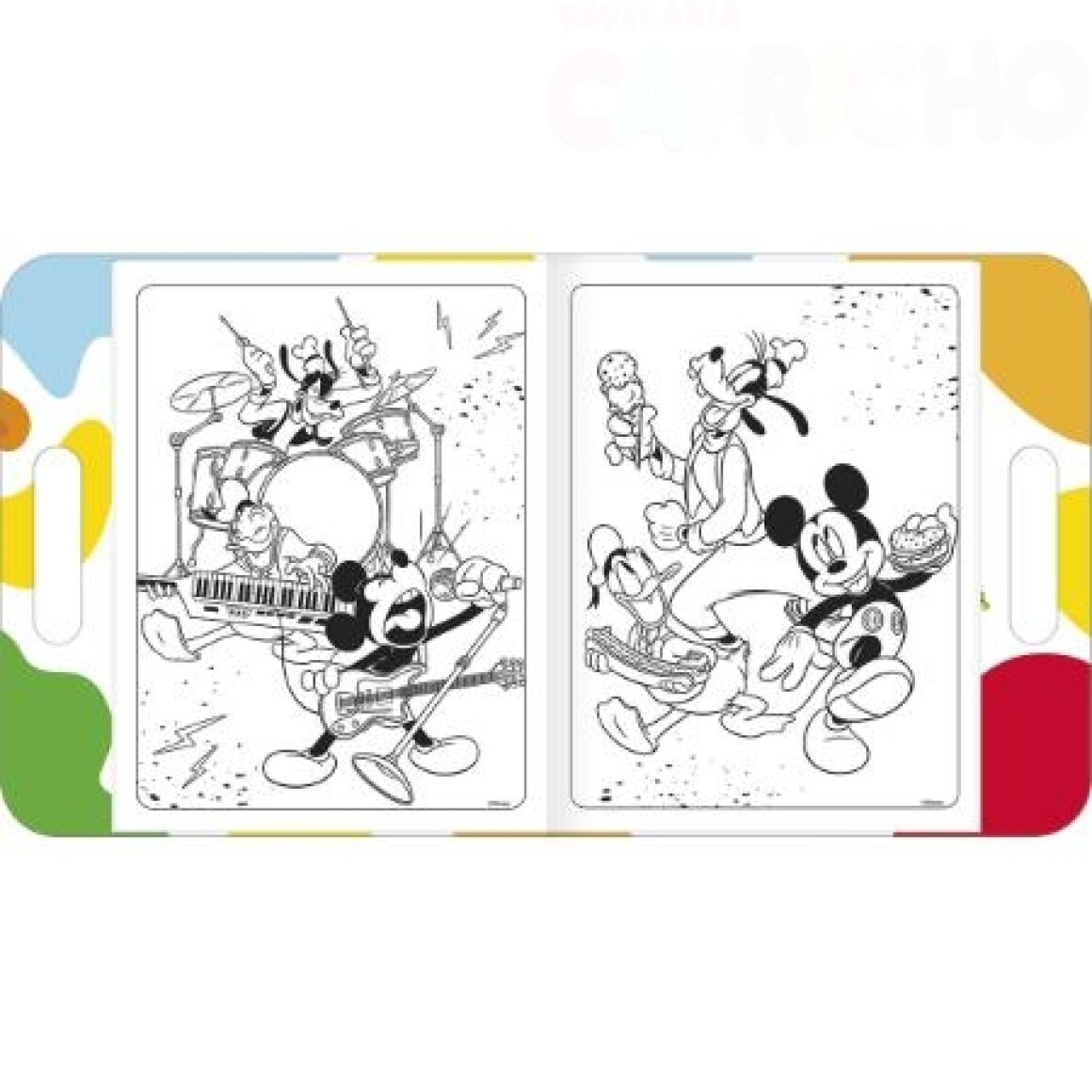 O Álbum para Colorir Maleta Mickey possui 8 folhas com desenhos para colorir do jeito que a imaginação permitir! O produto faz parte da coleção Aprender, Colorir e Brincar da Tilibra, que desenvolve atividades lúdicas e pedagógicas para estimular a criatividade e coordenação motora de crianças a partir de 3 anos.
