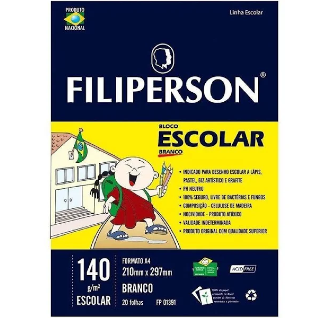 BLOCO ESCOLAR BCO 140G/M2 210X297MM(A4) 20FLS