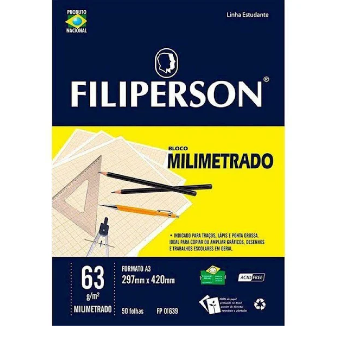O Bloco Técnico milemetrado- Bloco de Desenho - A4 - 50 Folhas -
