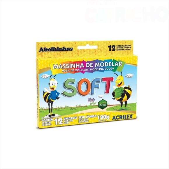 A Acrilex oferece produtos que auxiliam no desenvolvimento e aprendizado das crianças. A massa de modelar Acrilex é macia, feita á base de amido.Produto não toxico, recomendado para crianças com mais de 3 anos