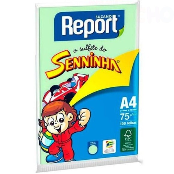 Papel Sulfite Senninha Report. Descrição: Para atividades de recortar, colar, pintar, escrever, dobrar e desenhar, papeis Report são feitos a partir de fontes renováveis que não agridem a natureza.